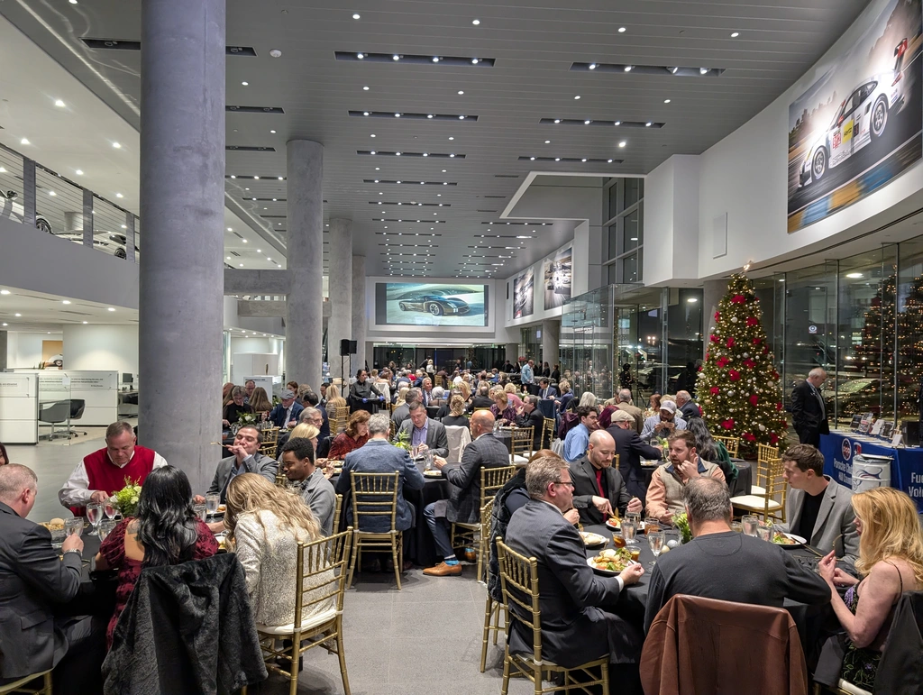 The Annual Holiday Party at Premier Dealer Porsche Austin was an absolute blast! The evening kicked off with a lively social hour, where guests enjoyed delicious hors d’oeuvres and drinks, setting the perfect tone for a night of celebration. The festive atmosphere was enhanced by the beautiful venue and some lovely special vehicles on display. The highlight of the night was the HCR Annual Awards ceremony, where we recognized outstanding individuals in the community. The Silent Auction and Raffle added even more excitement, with all proceeds benefiting HCR’s community service organizations. As always, guests showed immense generosity by bringing over one hundred gifts for the Blue Santa Toy Drive, making this holiday gathering a memorable celebration of both fun and giving back!